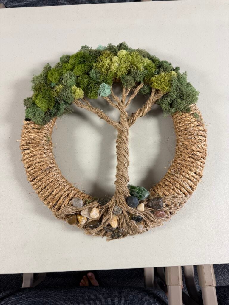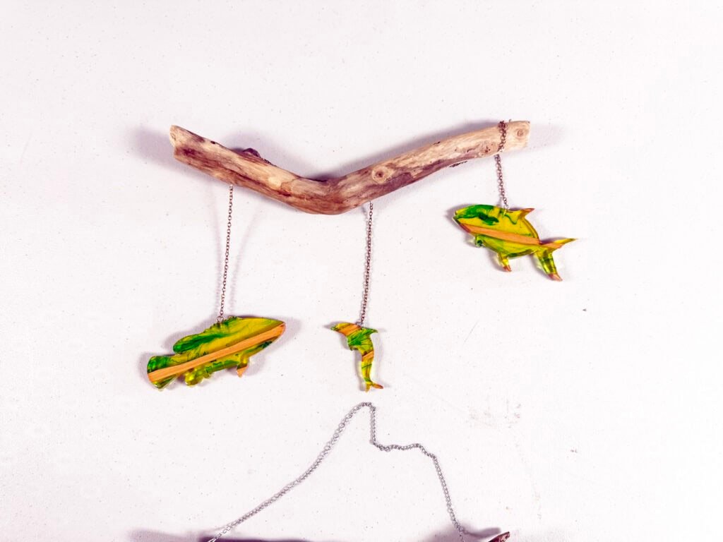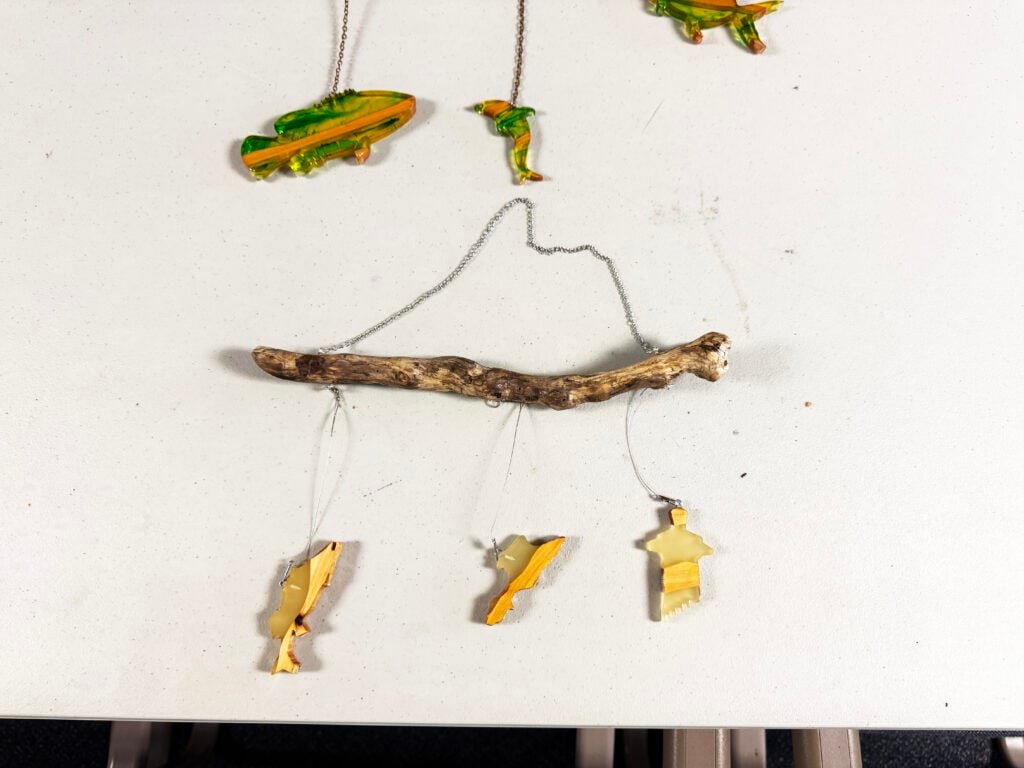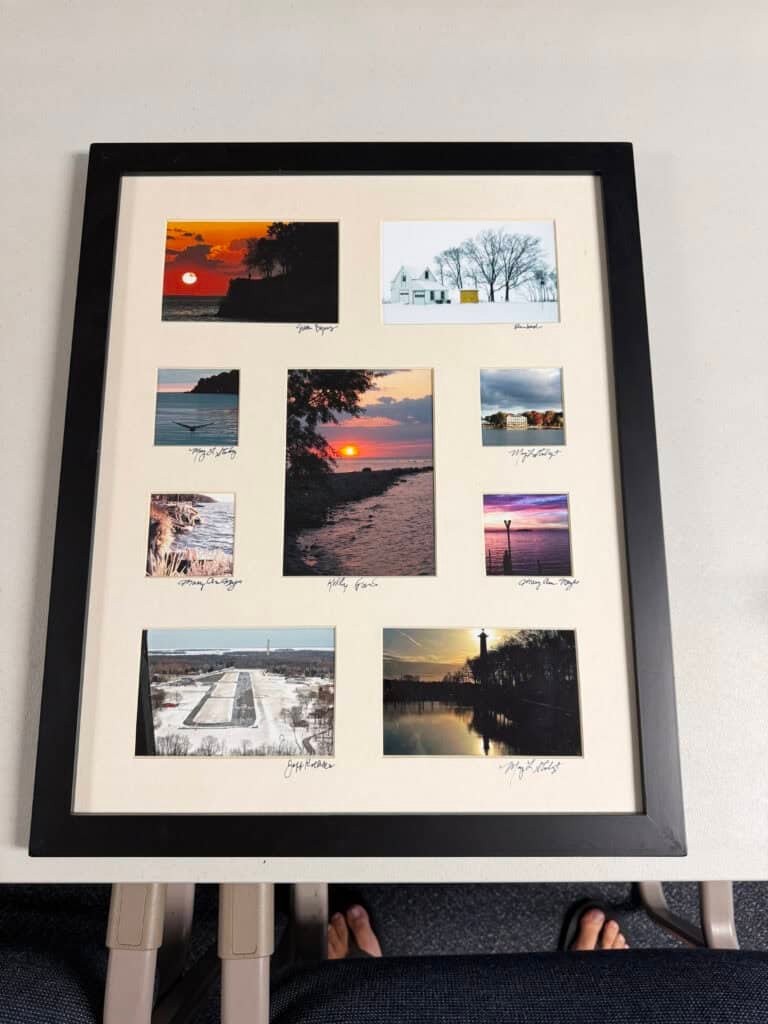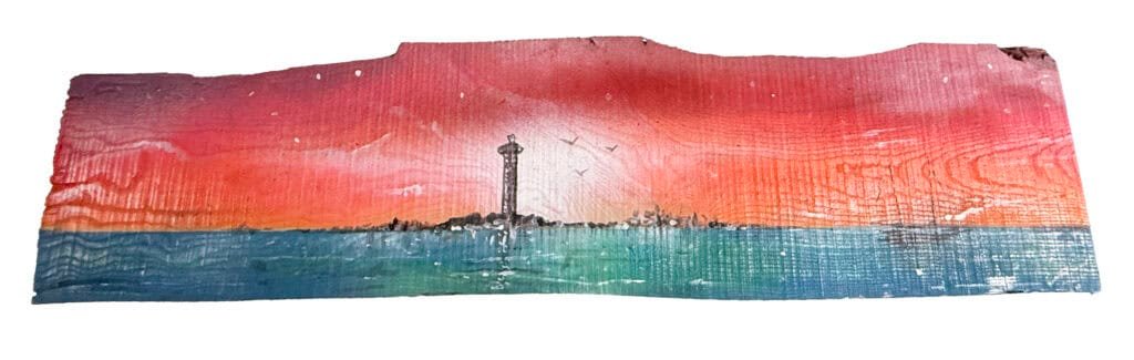Artists used wood from an ash tree at the Cliff House. The overall theme is Put-in-Bay and/or Lake Erie Island related.